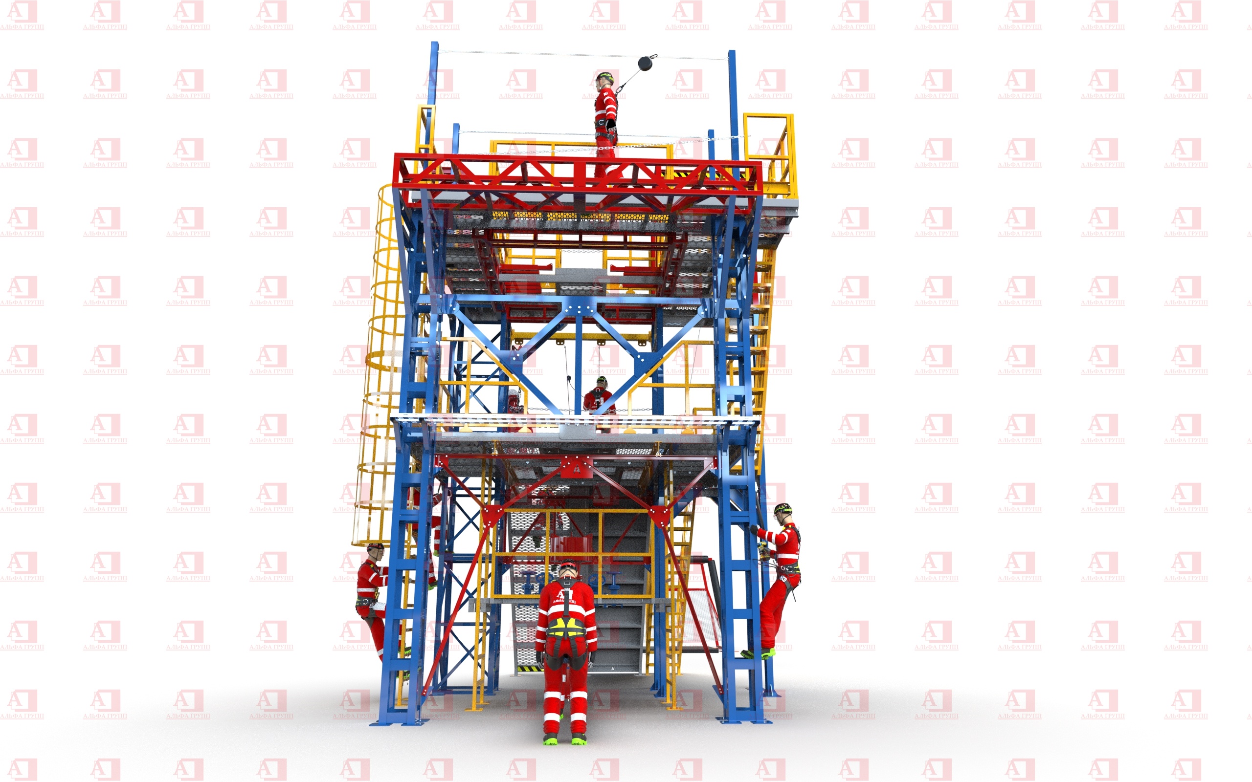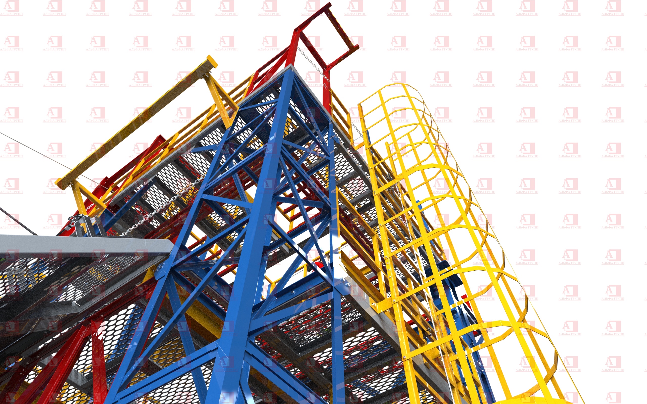 Конструктив уровней надежно крепится болтовыми соединениями к узлам и опорам полигона.