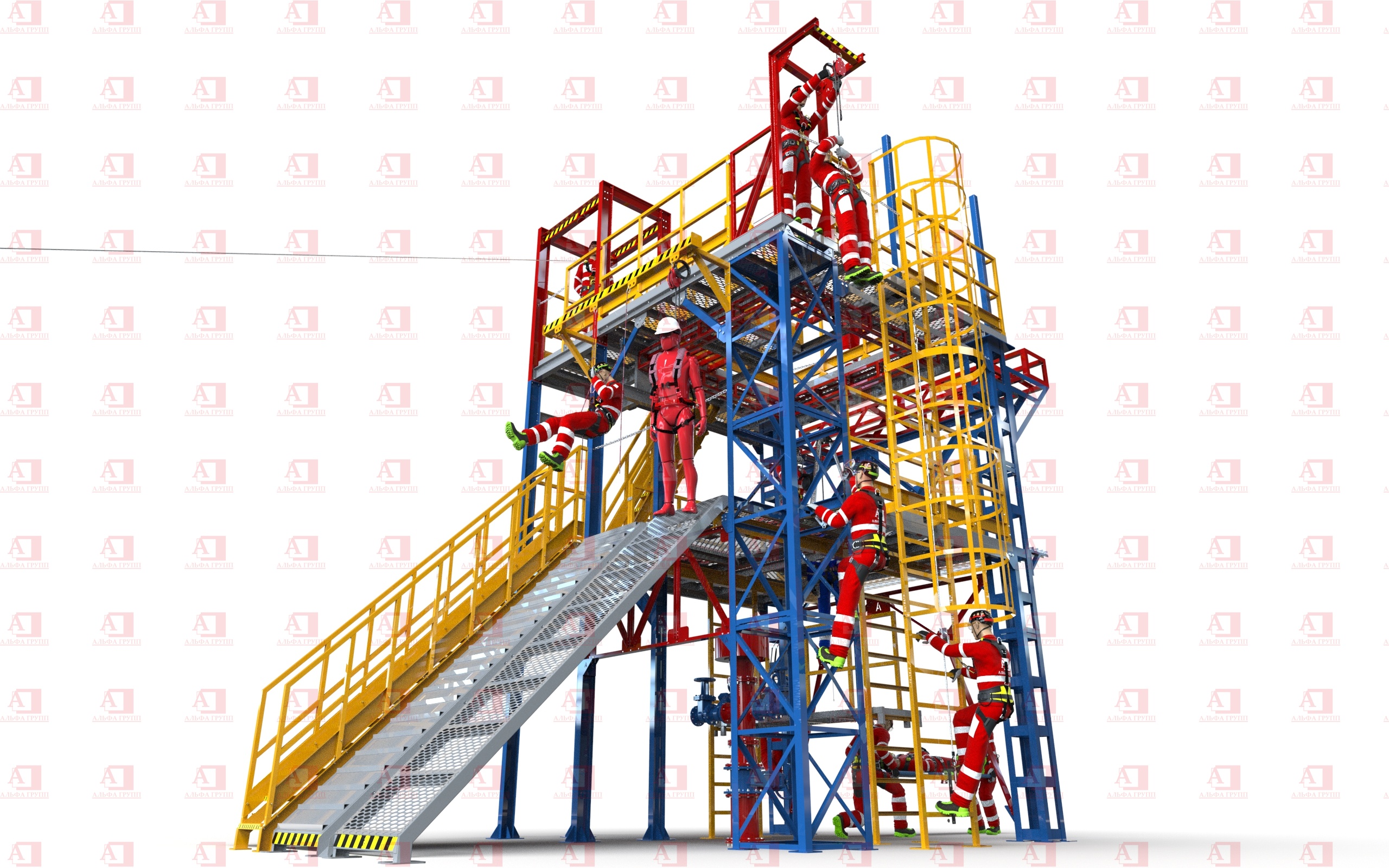 Для защиты от риска падения комплекс оснащен перилами и защитным ограждением высотой не менее 1100 мм.