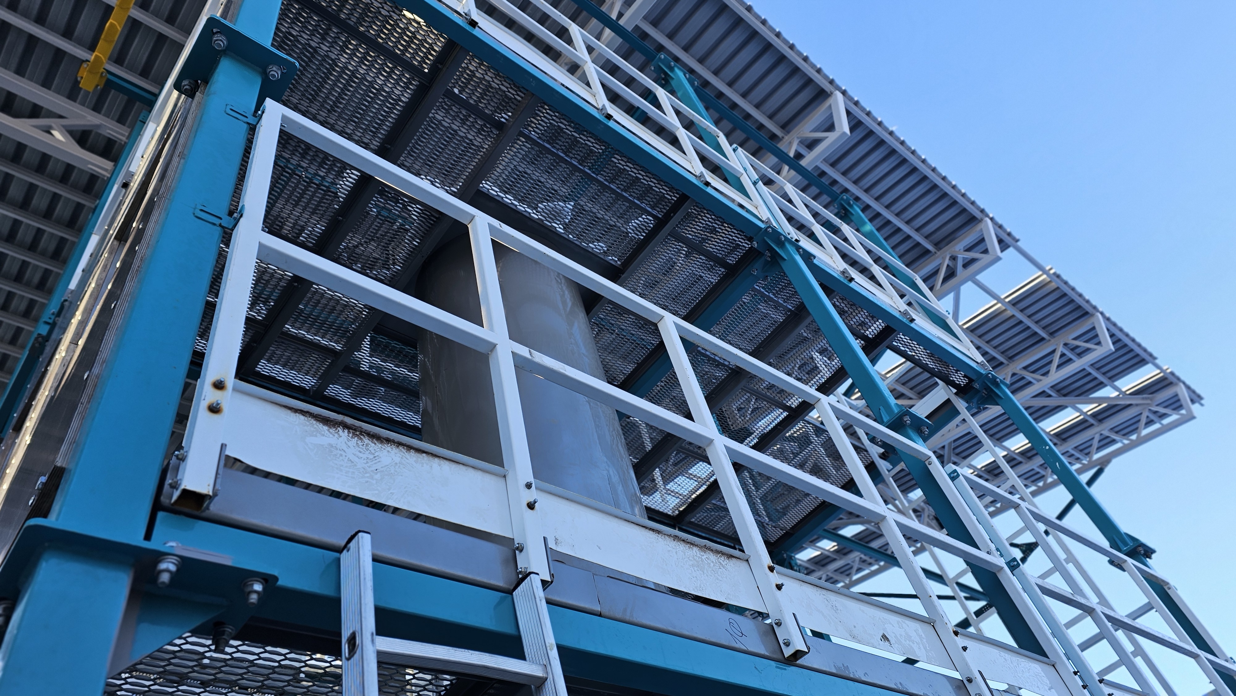 Учебный полигон «Сливо-наливная эстакада» представляет собой масштабную площадку длиной 39 м, шириной 15 м и высотой 12,2 м, общим весом 128 377 кг. Она оборудована надежной крышей для защиты от атмосферных осадков, эффективными системами освещения и комплексными мерами безопасности, включая ограждение по периметру. На бетонированной площадке размещены полноразмерные имитации: